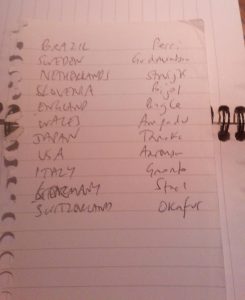 I tore a piece of paper out of my A6 Notepad and started writing nationalities and names of Leeds players. By the end of the match it read: